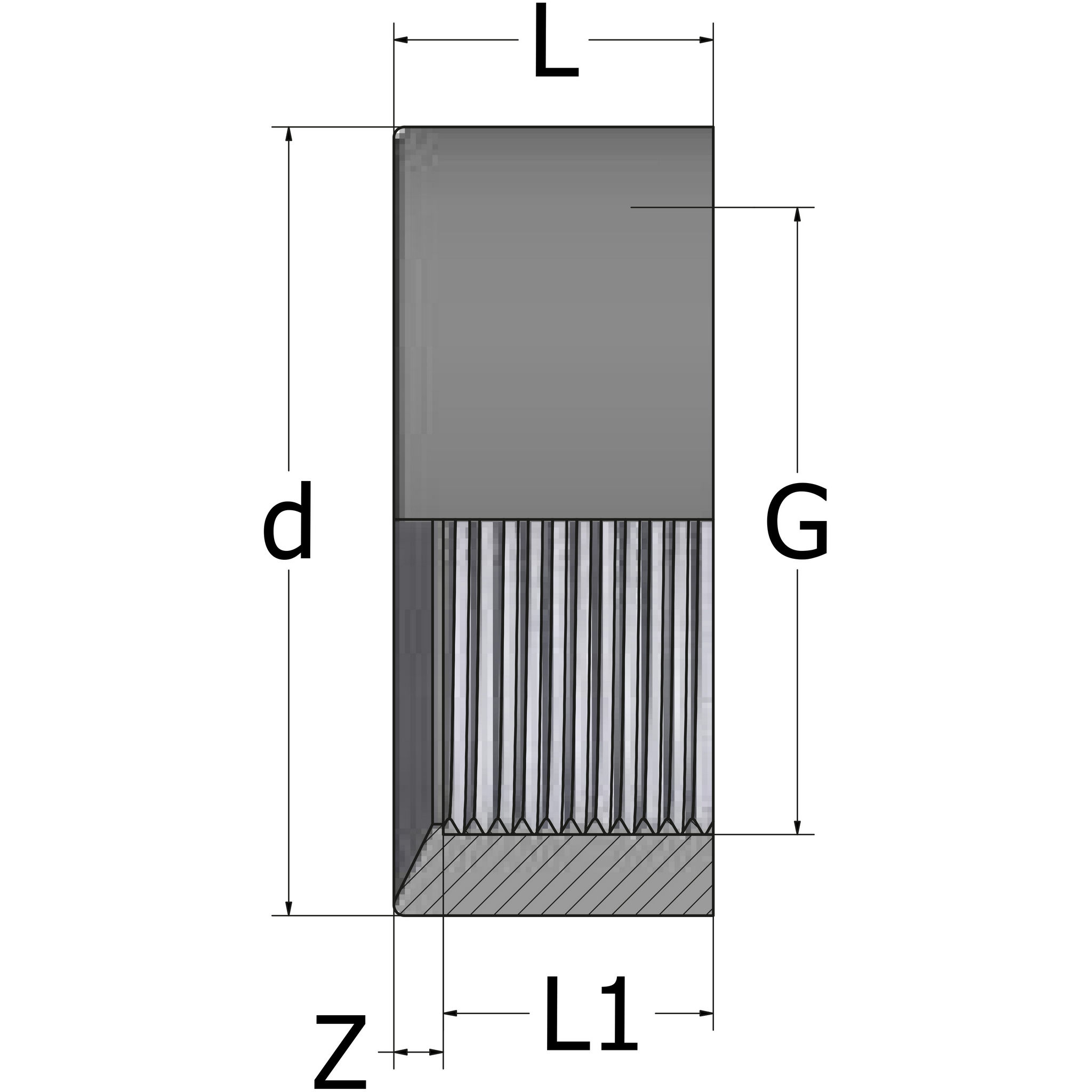 • Utvändig lim/Invändig gänga