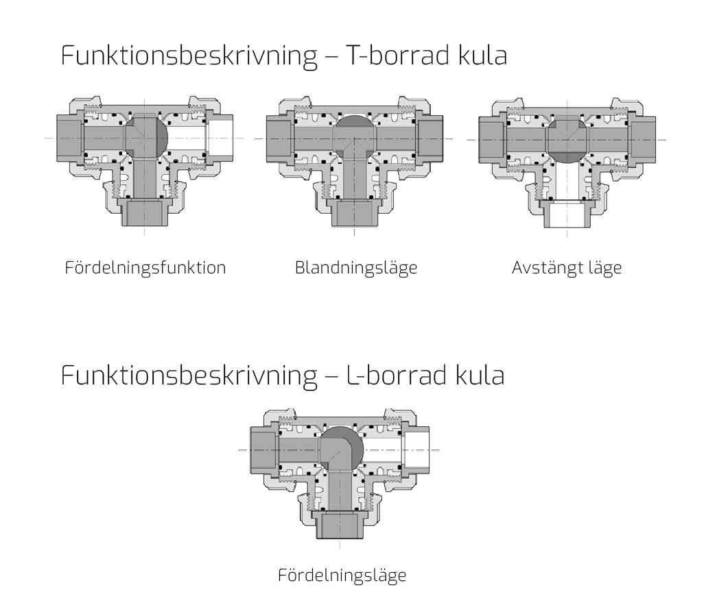 • PVC-U kulventil 3-vĂ€gs T-borrad kula